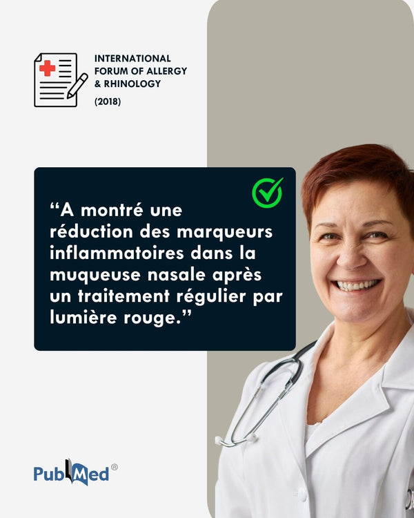 La photothérapie agit naturellement pour libérer vos sinus et apaiser l’inflammation.Validée par de nombreuses études médicales, elle stimule les muqueuses en profondeur, sans effets secondaires ni dépendance.En quelques séances seulement, retrouvez un confort respiratoire durable et une sensation de légèreté.